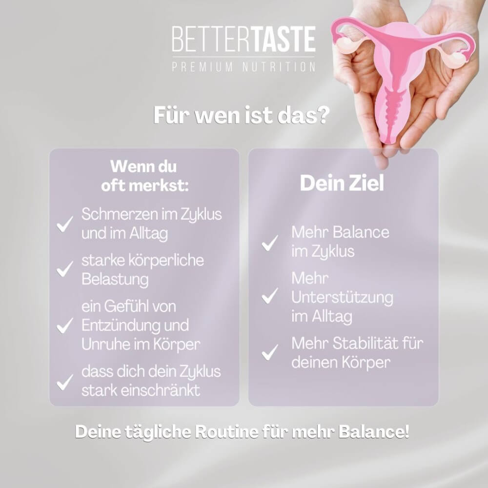 Bei Endometriose spielen oft mehrere Faktoren zusammen. Dazu gehören unter anderem zyklusbedingte Belastungen, hormonelle Prozesse, körperliche Dauerbelastung im Alltag und die Versorgung mit ausgewählten Mikronährstoffen. Eine gezielte Ergänzung kann deshalb eine wertvolle Unterstützung für deine tägliche Routine sein.