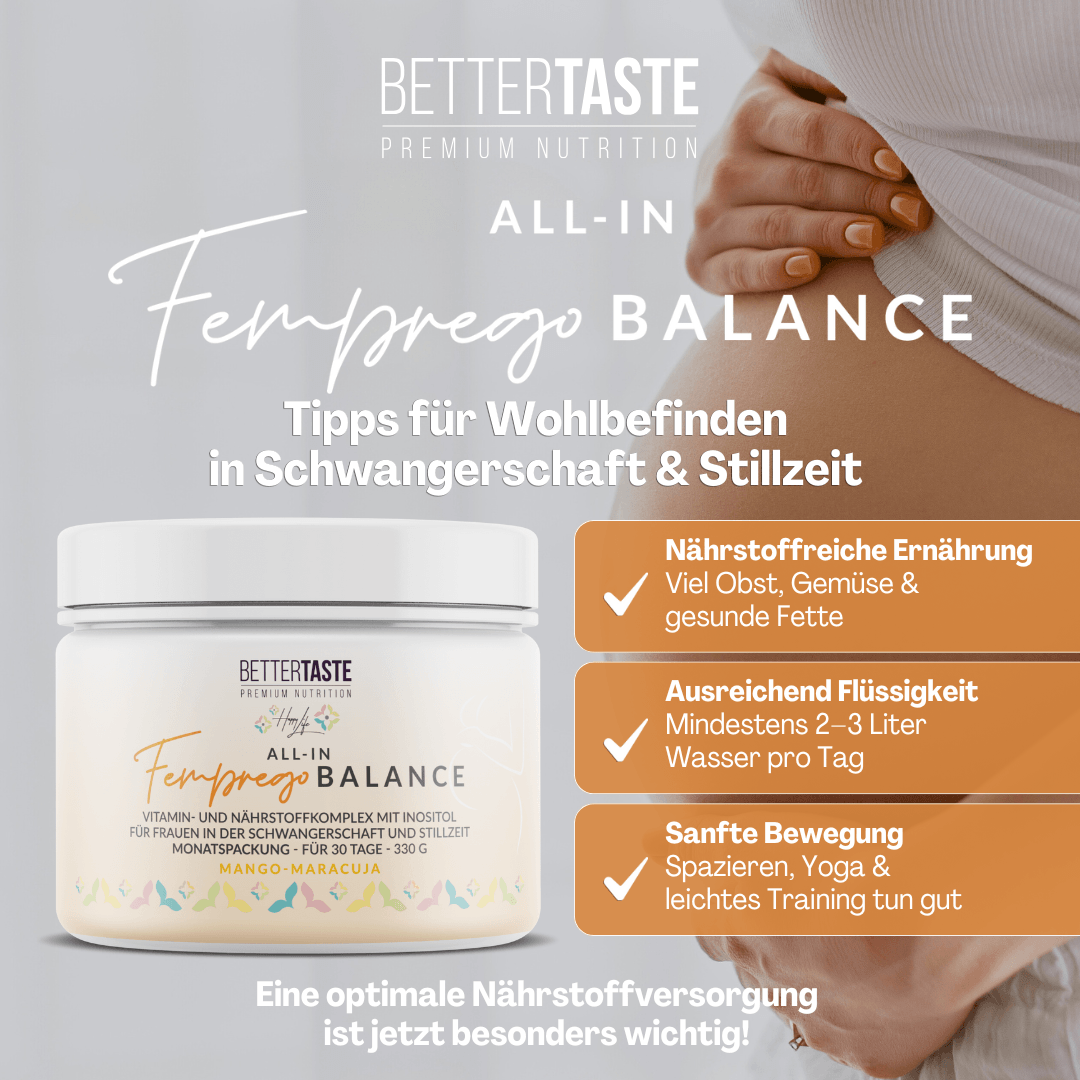 ALL IN FEMPREGO BALANCE ist somit speziell auf die Bedürfnisse von schwangeren und stillenden Frauen abgestimmt und zu 100% hormonfrei.